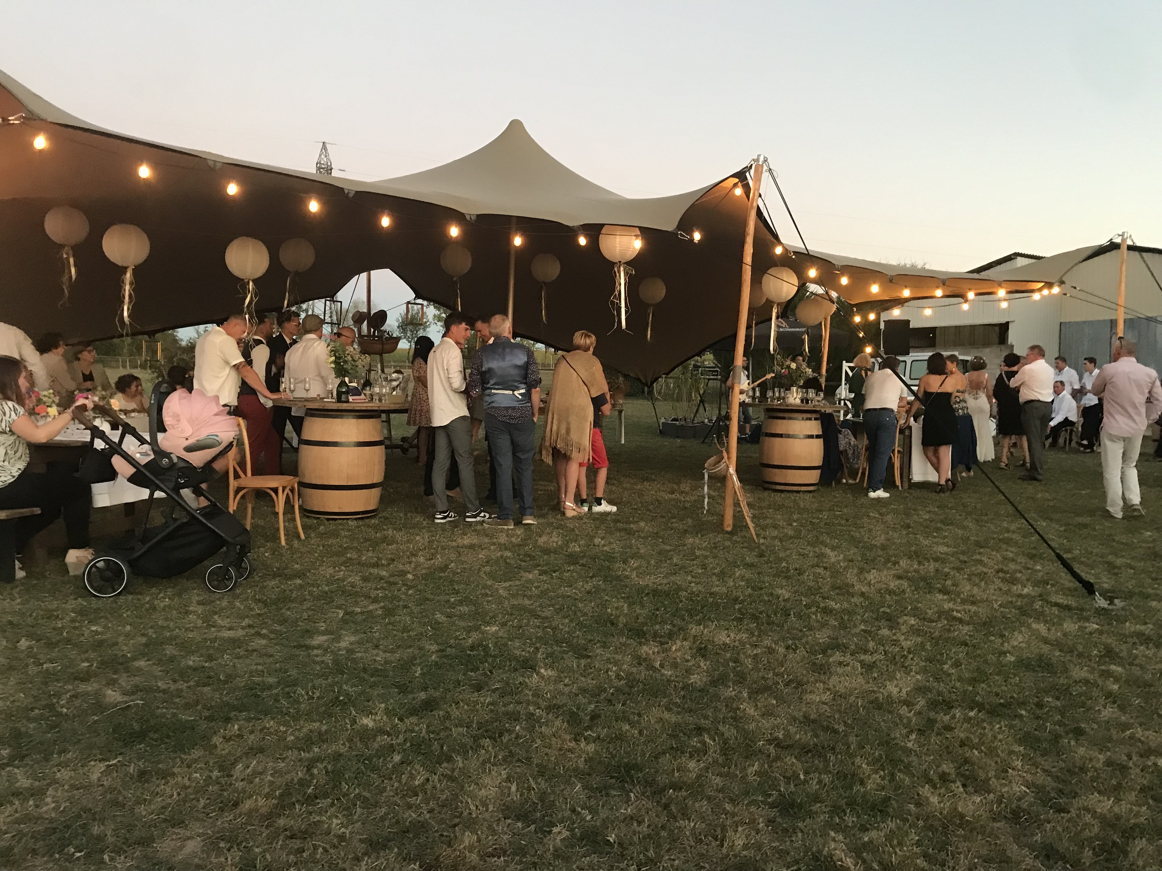 Nous avons fait appel à l'équipe de Jimmy pour notre mariage. Tout était superbe, la tente, les guirlandes, le mobilier... Le résultat était féerique, et ça a fait sensation auprès des invités. On ne regrette absolument pas notre choix d'avoir fait appel à eux, ils ont eu le courage de venir à 3 monter la tente de 160m2 sous +30 degrés et toujours avec leur bonne humeur !